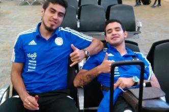 Дерлис Гонсалес с бомбардиром сборной Парагвая после матча с Эквадором