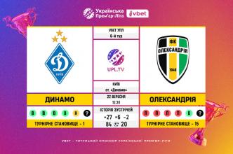 Сьогодні відбудеться матч 6-го туру VBET Української Премʼєр-Ліги, в якому "Динамо" прийматиме "Олександрію". Поєдинок на стадіоні "Динамо" ім. В. Лобановського розпочнеться о 15:30. У день гри відбул...
