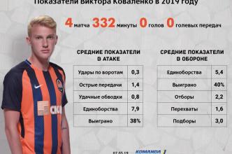 четырех матчах 2019 года полузащитник Шахтера Виктор Коваленко нанес