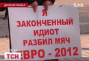 Хулиганы стояли с табличками "Я законченный идиот" за разбитый мяч Евро-2012