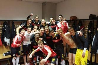 Кравец вместе с партнерами по "Штутгарту" радуется победе над "Кельном" в раздевалке
