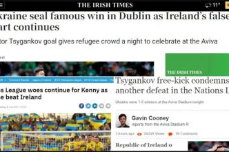 Ірландська Independent за гарячими слідами матчу Ліги націй своєї збірної проти національної команди України, що завершилася перемогою синьо-жовтих. 1:0, оцінила дії своїх хлопців, пише zbirna.com.Звичайно, з огляду на результат, на горіхи дісталося всім...