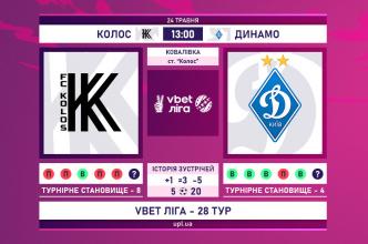 Матч 28-го туру VBET ліги "Колос" — "Динамо": статистичне прев’ю
