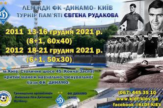 З 13 по 21 грудня 2021 року ГО «Київська ліга дитячого футболу» та ДЮФШ «Динамо» ім. Валерія Лобановського проводять Всеукраїнський дитячий футбольний турнір пам’яті Євгена Рудакова серед дітей 2011-2012 років народження...