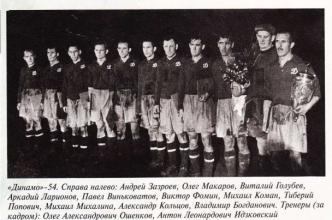 20 октября 1954 года "Динамо", обыграв в финале "Спартак" из Еревана, впервые в своей истории выиграло Кубок СССР.1954 год. Финал Кубка СССР20 октября. г.Москва. Стадион «Динамо». 65,000 зрителей «Дин...